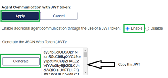 Go to Enable → Generate, copy the generated JWT by clicking Apply.
