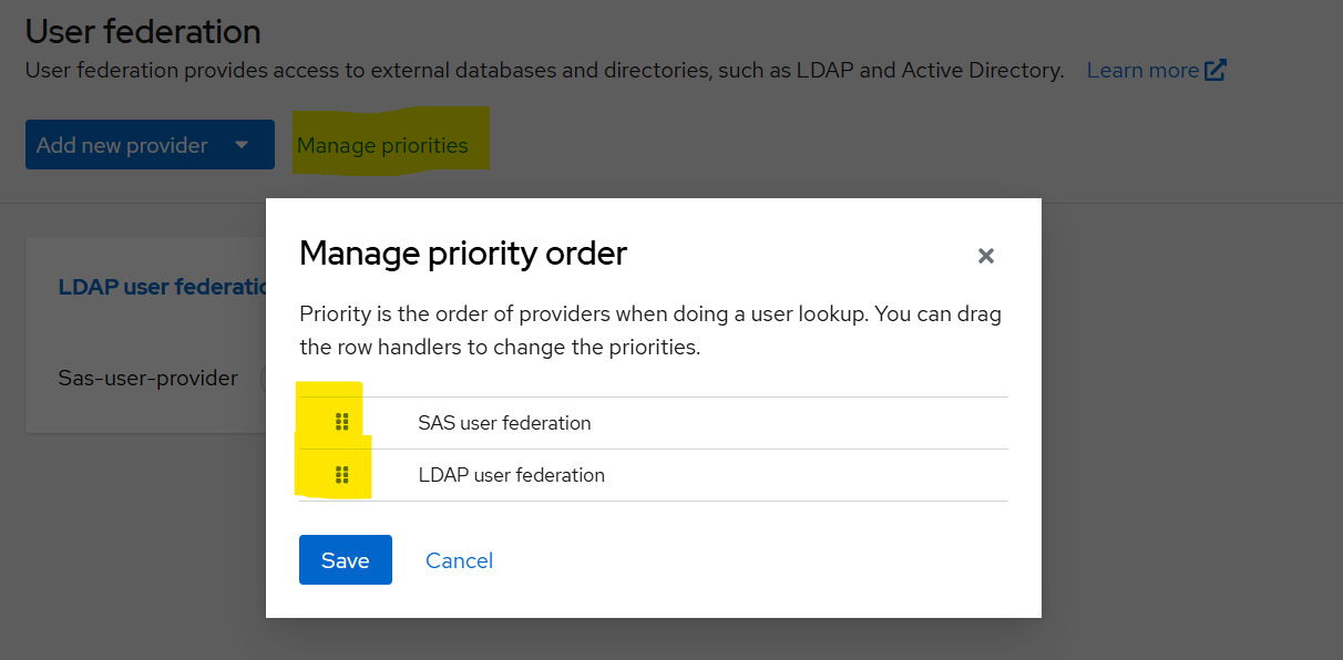 If you are using the SafeNet LDAP FIDO flow, you must configure both SAS User Federation and LDAP User Federation.