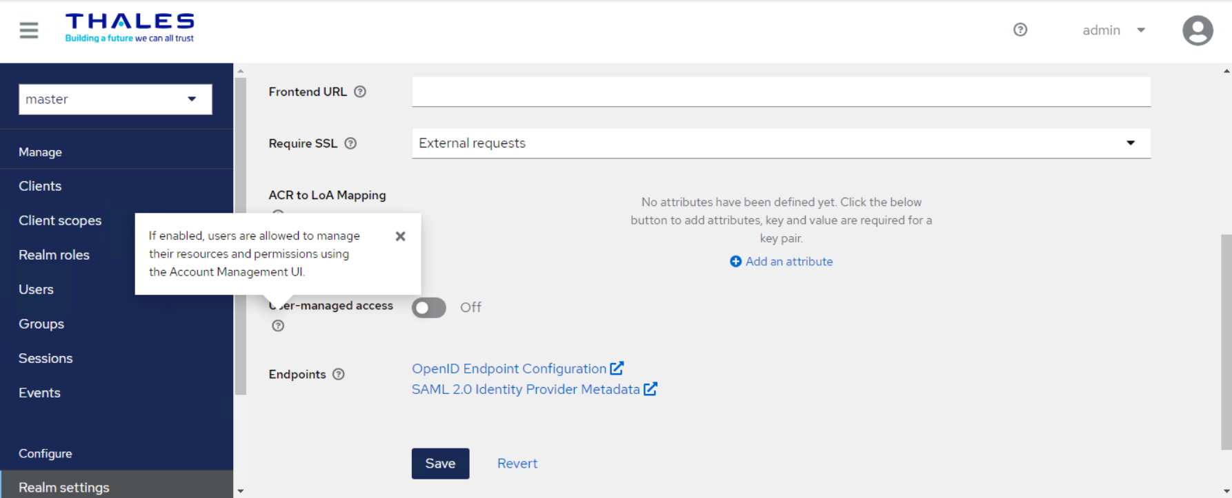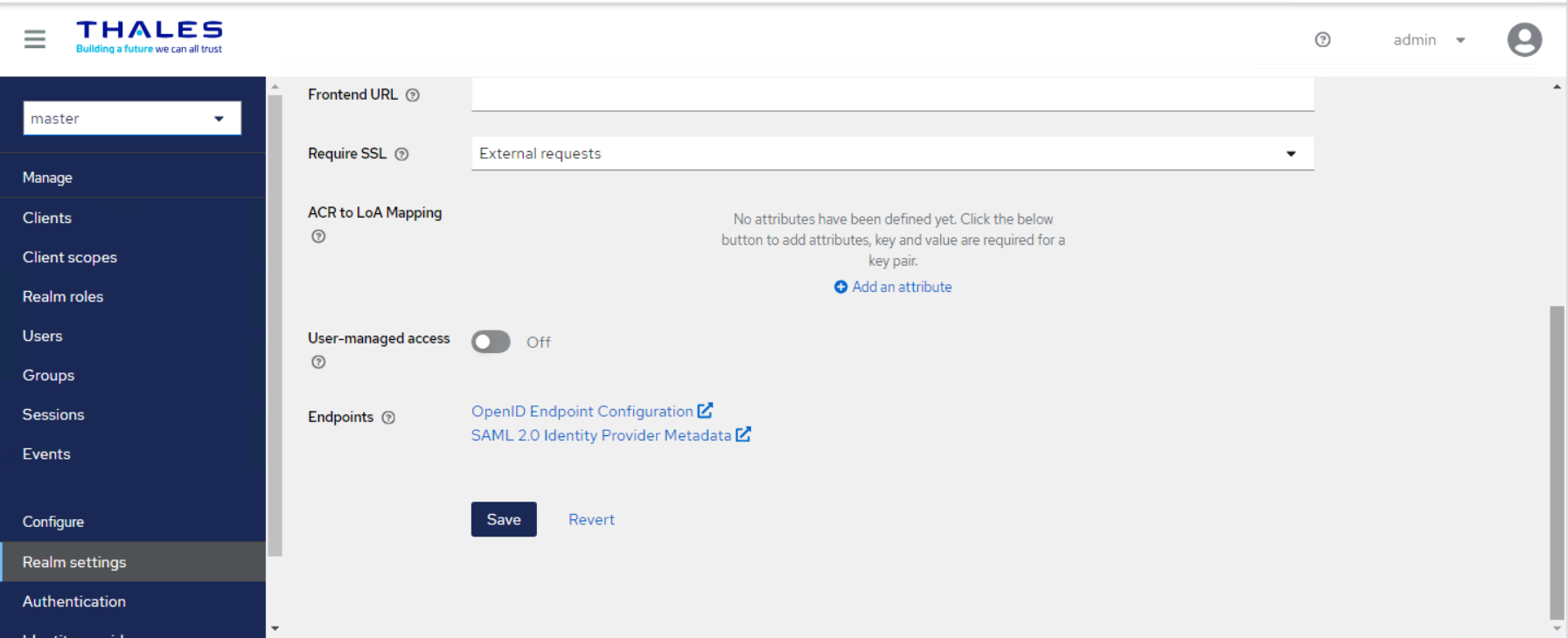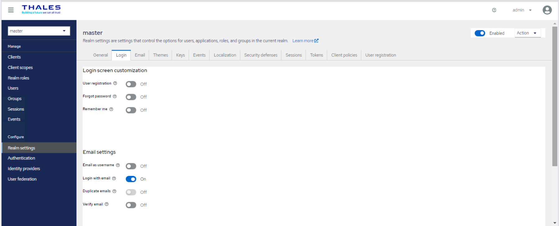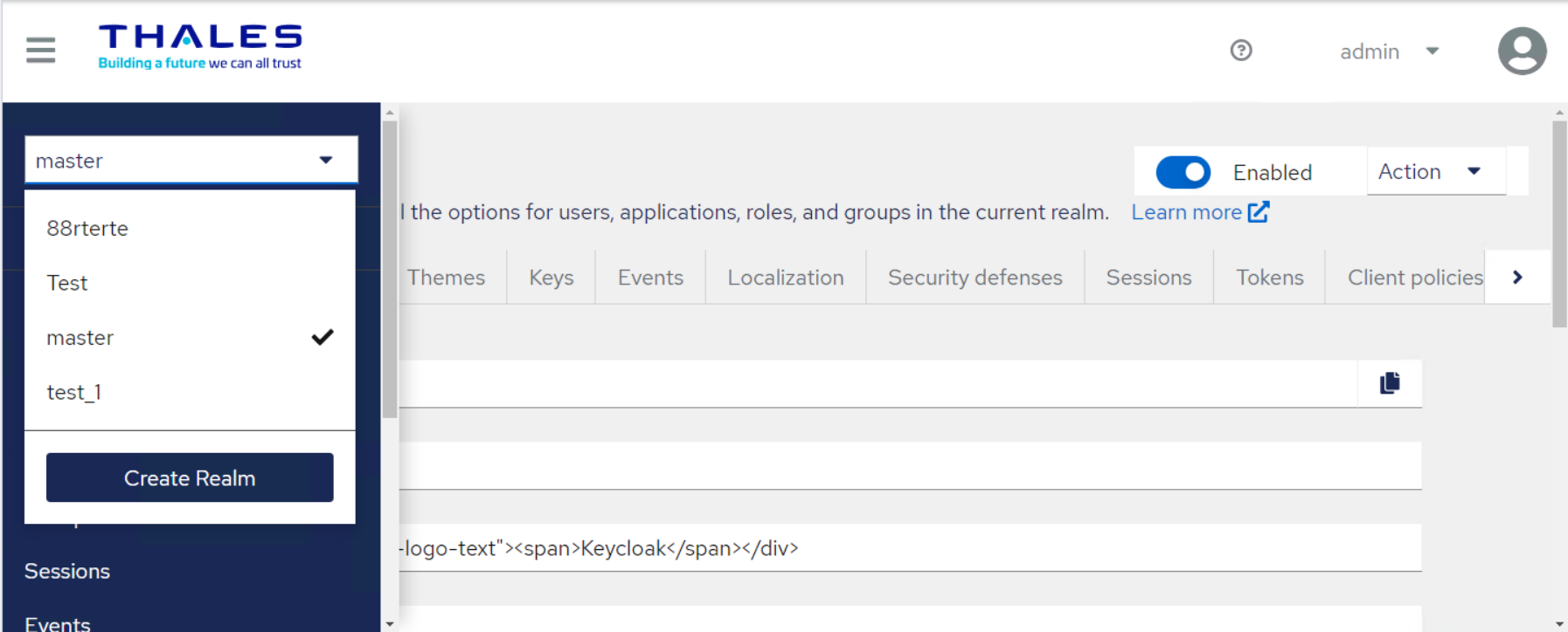 Master realm- This realm was created for you when you first started SafeNet Access Exchange. It contains the administrator account you created at the first login. Use the master realm only to create and manage the realms in your system.