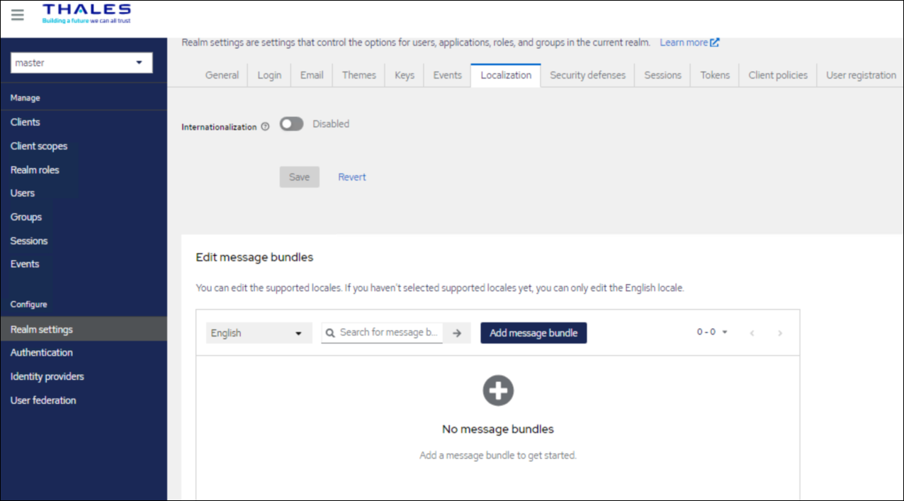 For existing realms, turn on the Internationalization enabled, the following supported languages are displayed: