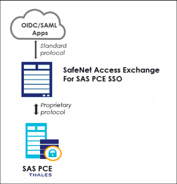 SafeNet Access Exchange (SAE) is an on-premises IDP, which complements secure authentication of SAS PCE. With this integration, SAS PCE provides multi-factor authentication in the context of authentication requests received from SAML or OIDC integrated applications. SafeNet Access Exchange is also a key component of SAS PCE Enterprise and STA Hybrid Access Management Add-On based deployment.