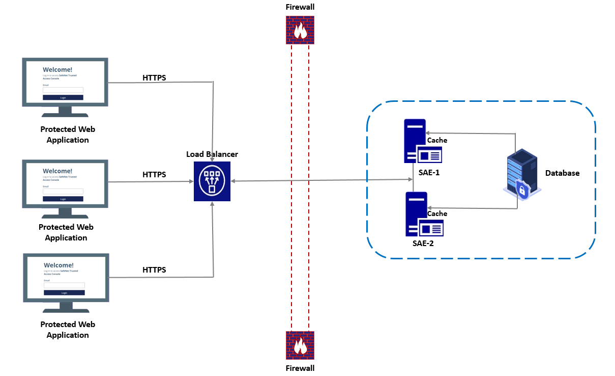 The following image describes the authentication flow of SafeNet Access Exchange HA Cluster deployment: