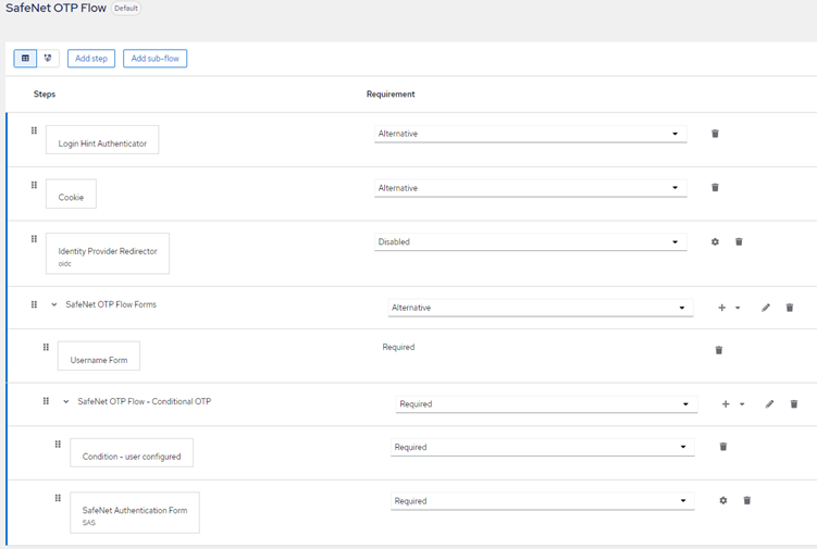 In the right pane, under Authentication, select a SafeNet flow of your choice (for example, SafeNet OTP Flow), and replicate the configuration as displayed in the below screenshot.