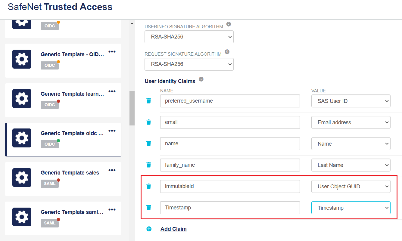 In this section, mapping is created to ensure that incoming attributes, provided as claims from SafeNet Trusted, are captured in SafeNet Access Exchange.