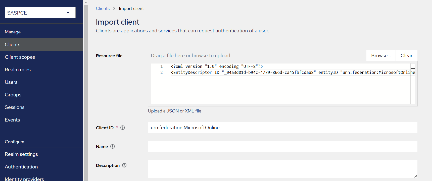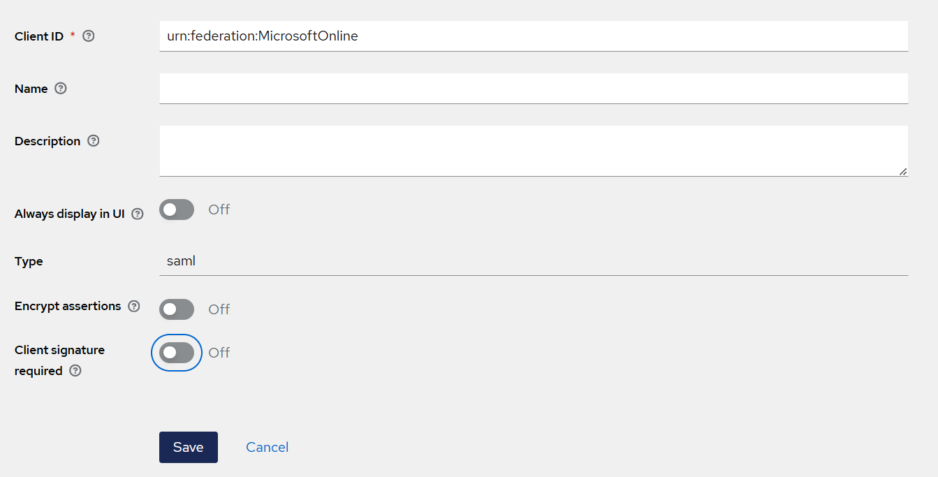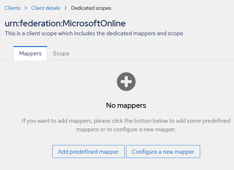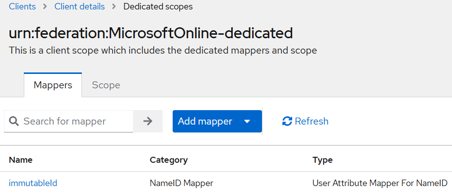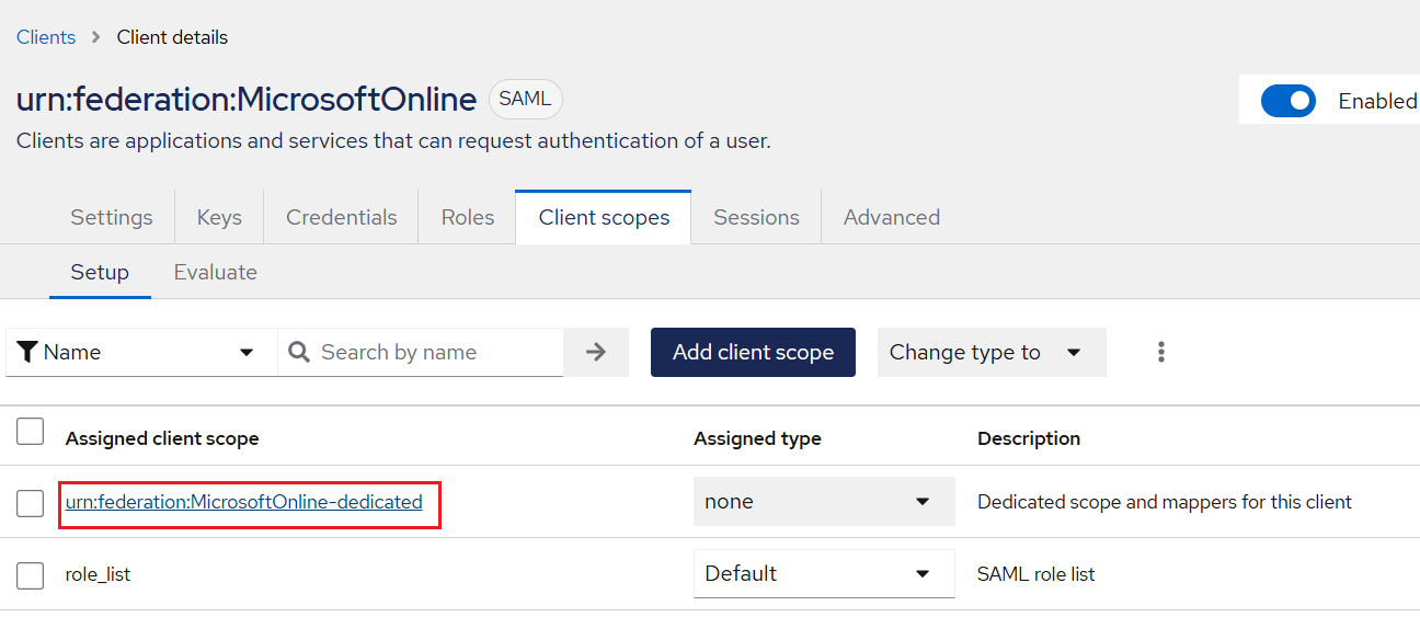 Under Assigned client scope, click urn:federation:MicrosoftOnline-dedicated.