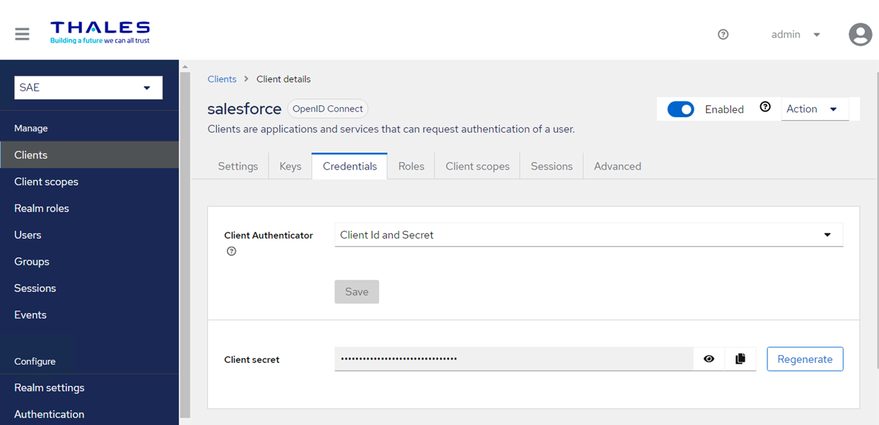 Configuring the Identity Provider (for example, SafeNet Access Exchange) requires creating a client in SafeNet Access Exchange.