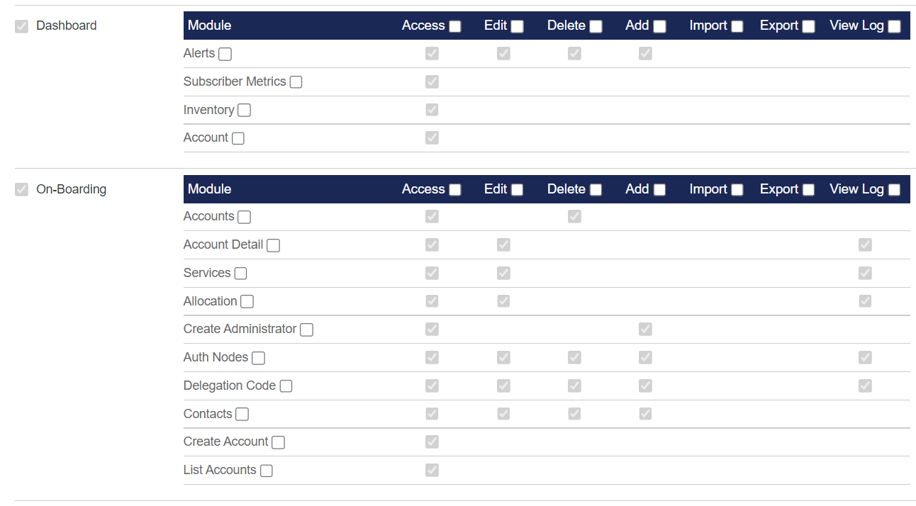 - Disabling the Add, Edit, and Remove actions in the Auth Nodes module would allow an Account Manager to view the Auth Node list and deny the ability to make any changes.