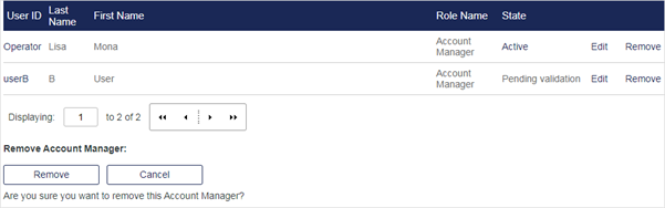 - Remove - Remove the user as an Account Manager.