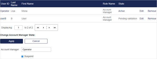 - State - Suspend or activate an Account Manager to deny or allow login to the management UI.