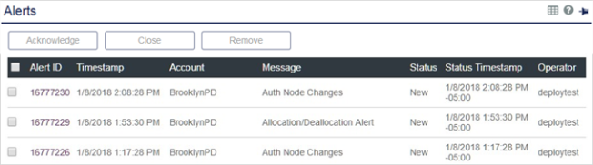 Select the check box to the left of the Alert ID and click Acknowledge.