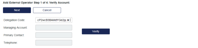On the Virtual Server of the account to be managed, select Virtual Servers > Operators > External Operator.
