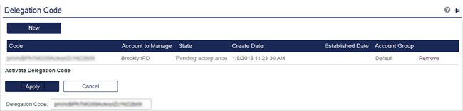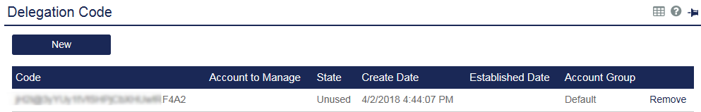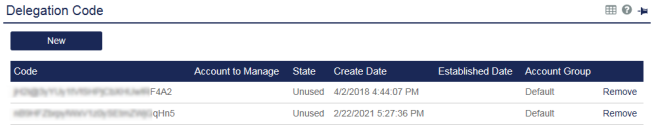 To remove a delegation code at any time, select the Remove link for the corresponding code.