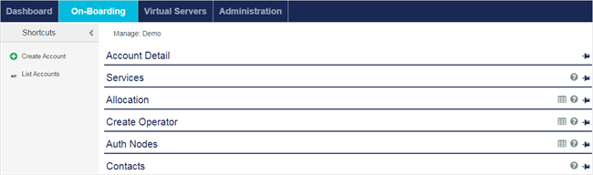 On-Boarding is where you manage your accounts and add accounts, which involves configuring the service type, token allocations, Operators, authentication nodes, and so on.