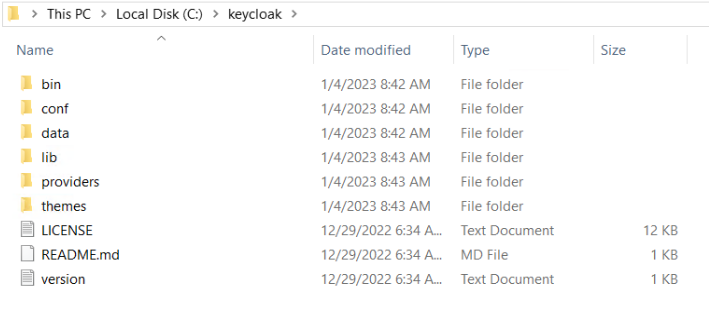 Ensure the Keycloak server's directory structure contains "bin/", "conf/", "lib/", "data/", "providers/" and "themes/".