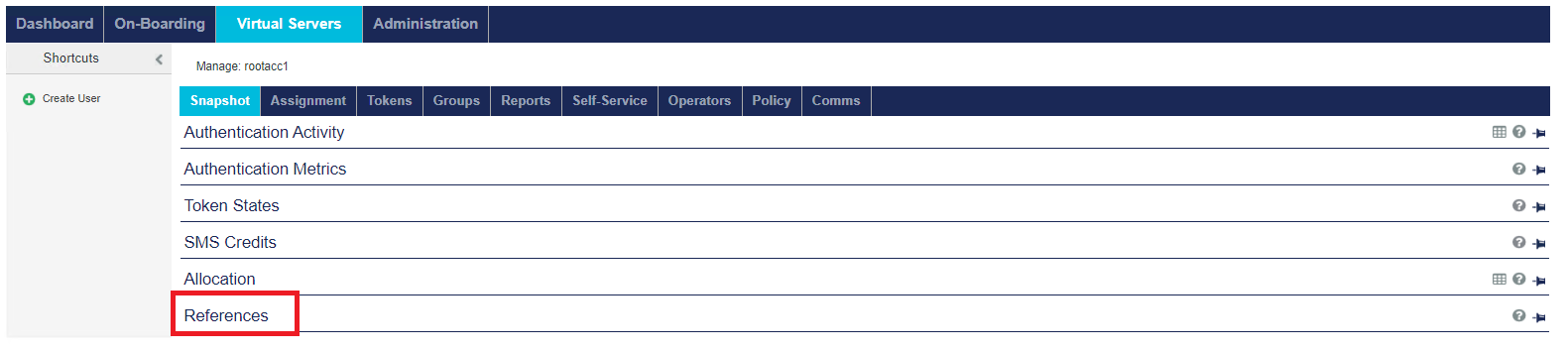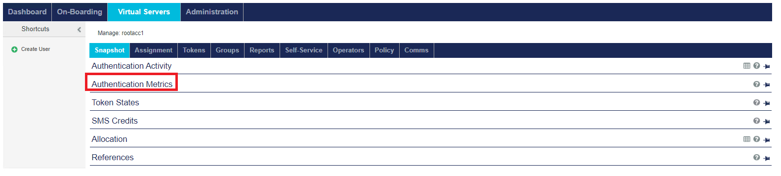 | User Policies | Configure a user’s access to the authentication service. | |