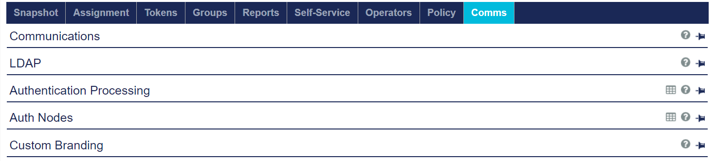 The Virtual Servers > Comms tab contains the following modules: