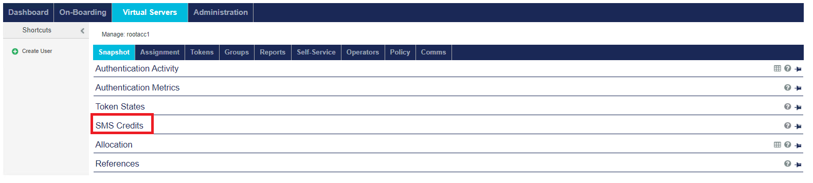 - Unused - Total unused capacity. Capacity is consumed when an authentication method is assigned to a user in the account’s Virtual Server, or if the account’s Virtual Service Provider (Operator) allocates capacity to an account that it manages.