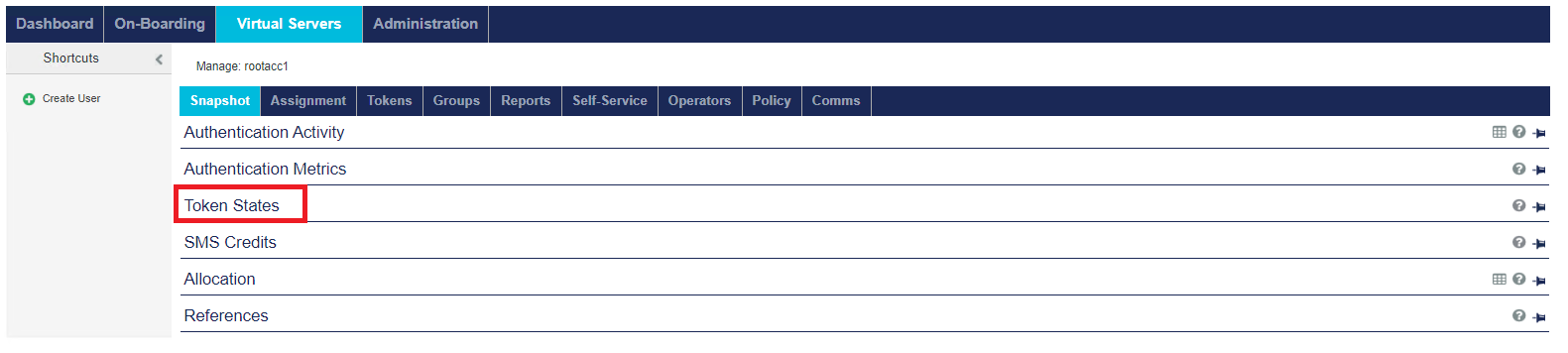 Token States — Displays all tokens registered in the Virtual Server by state.
