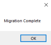 When the process is complete, the window displays Migration Complete message. Click OK to finish the process.