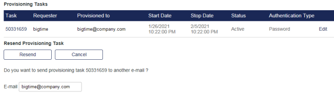 You can resend a provisioning task message to a user. Only active provisioning tasks can be resent.