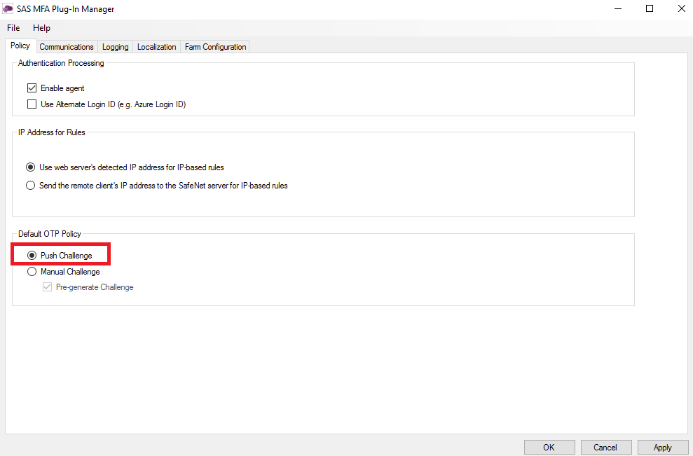 Under Default OTP Policy, click Push Challenge, and then click Apply.
