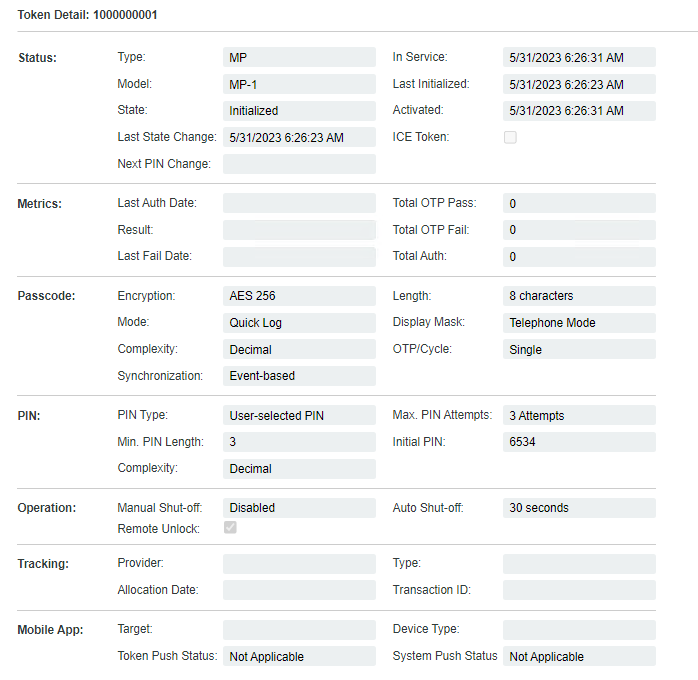 Push OTP: This field displays the Push OTP state at the time of token enrollment: