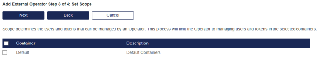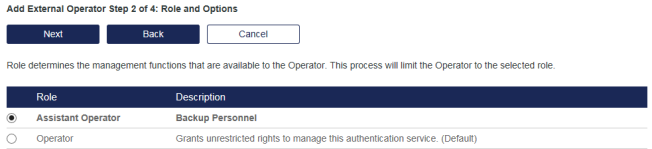 As with internal operators, external operators have an assigned role, which by default is Operator, allowing access to all of the Virtual Server tabs, modules, and actions.