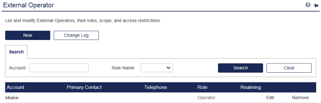 An additional external operator account is created for each Service Provider account to which management of the Virtual Server has been delegated. External operator accounts can have different roles.