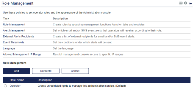 Roles are specific to the Virtual Server in which they are configured. The operator role grants unrestricted rights to manage the Virtual Server.