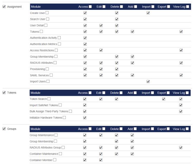 To remove a role's ability to provision a token, deselect the Access check box in the Assignment section > Provisioning row.