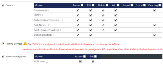 It is a best practice to limit a role with Remote Services access to a specific API user. A user whose role includes Remote Services has full access to the management API, regardless of any other limitations that are imposed on that user.