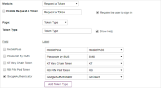 This page displays a list of token types that may be requested by the user. Each type in the list has a corresponding enrollment class. The class selection determines which notification and enrollment instructions the user will receive for the selected token type.
