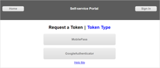 This is the first page presented to the user when accessing this service. Users that have an account and an assigned authentication method, such as a token, can sign in to the Self-Service site and request an additional token.
