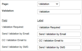 The Validation page is used to configure messages that will be displayed to the user for token validation. If enabled, the user must confirm their request for a token by replying to a message delivered to them via email or SMS.