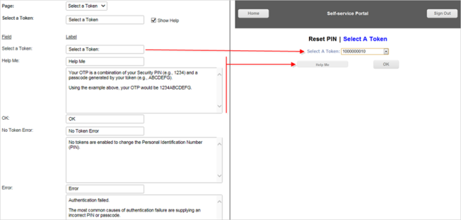 If a user has more than one token, this page provides a list from which the user can select the token. PIN reset applies to the selected token.