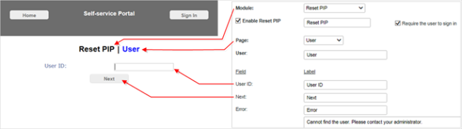 This page displays for a valid user ID provided on the User page and requires the user to provide their PIP.