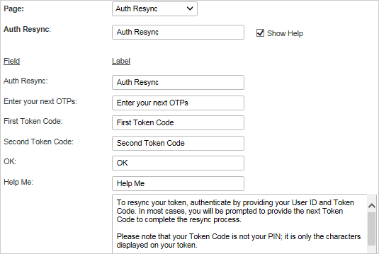 This service provides the ability to resync a token with the server and confirm the ability to authenticate with the token. There are six (6) pages in this service. Each page contains a section for error messages or help text.