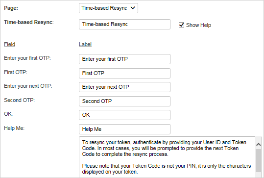 This page is presented when the selected token is time-synchronous and supports resynchronization using two consecutive OTPs.