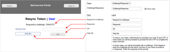 The challenge/response page is presented when a token fails resynchronization using all other available methods. In this method the user must key the displayed challenge into their token to generate a passcode or “response”, and then enter the response in the indicated field.