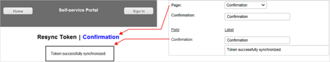 The confirmation page displays the outcome of the synchronization attempt whether successful (Confirmation), failed (Error) or not processed (No Token Error).