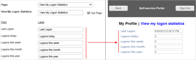 This displays information about authentication activity by the user including last logon date, number of logons: today, this week this month and this year. This page can be unpublished.