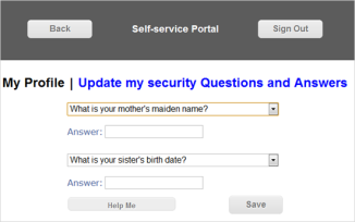 Security Questions and Answers can be used as an alternative sign-in method for the self-service site. This service allows the administrator to create a series of questions. The user will be required to create a set of answers to these questions. During sign-in the user will have the option of supplying the previously recorded answers to the questions as an alternative sign-in method if this method is enabled. This page can be unpublished.