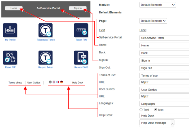 You can create multiple language sets for each of the self-service modules, and all of the pages, error messages, and help text available with each service.