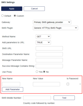 To configure communications with SMS service providers that are not included in the SMS Plugin list, select the Generic HTTP(s) SMS Plugin option.