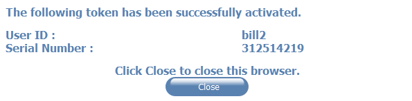 The next web page confirms that you have completed enrollment. Click Close.