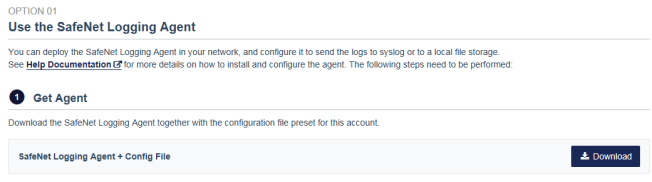 You get the SafeNet Logging Agent from the STA Access Management console. You download the agent files, and then get an API key.