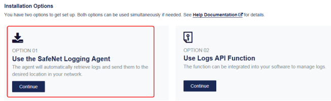 The SafeNet Logging Agent needs an API key for authentication, because it uses the Logs API. The agent sends each log that it retrieves as a syslog message to an IP address. Log retrieval begins automatically after you start the SafeNet Logging Agent.