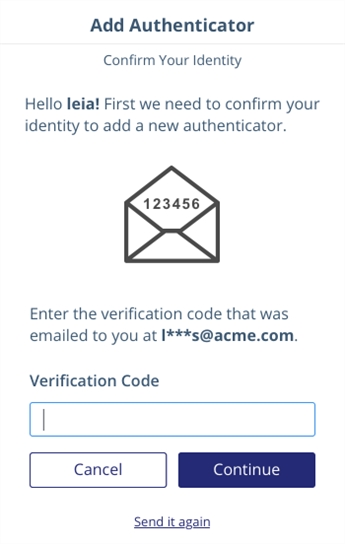 Enter the verification code from the email into the text box on the Confirm Your Identity screen.