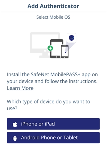Select Enroll your SafeNet MobilePASS+ authenticator.