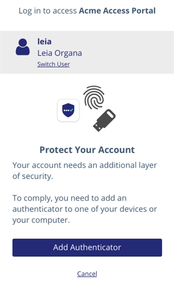 (STA only) Enroll an authenticator from the user portal, and then use it immediately to log in. -